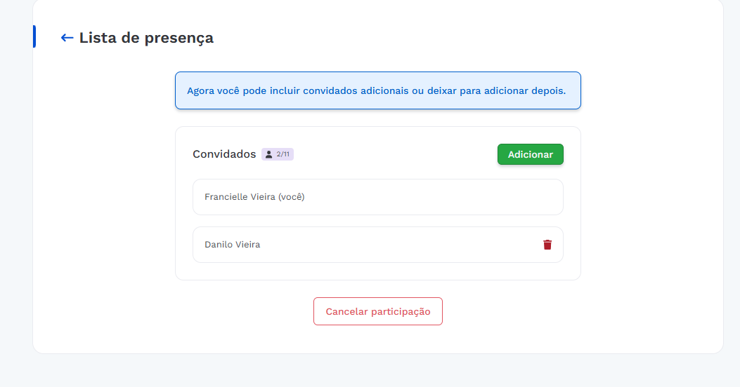 Como confirmar que adicionei meu nome e dos meus convidados em uma lista?