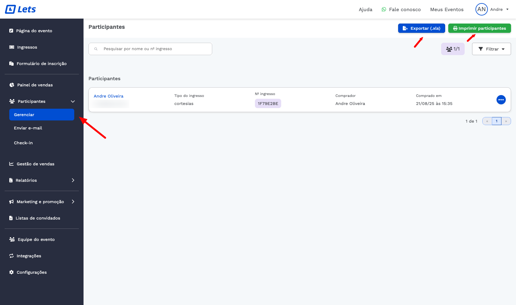 Caso queira imprimir sua lista de participantes, faça o seguinte passo a passo: